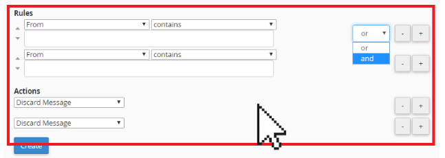 3) On the Create a New Filter page, you will see that that you can add multiple rules and action to a single filter.