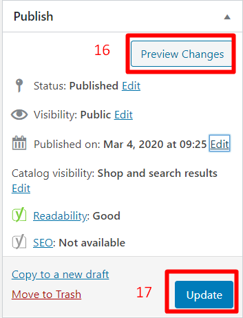 15. In the Publish panel, set your Catalog Visibility options and feature status for your product.