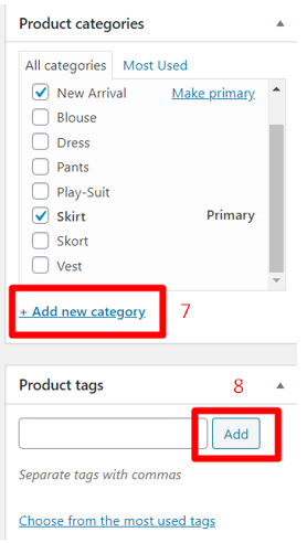 7. Add new product categories and tick on the category. Example: tick on “New Arrival’’ and ‘’Skirt’’. (If applicable)