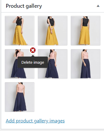 13. To remove an image from the product gallery, hover over the image and click on the red “x.”
