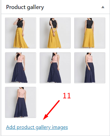 11. Create a Product Gallery using the same method as adding a Product Image, but using the Product Gallery meta box.