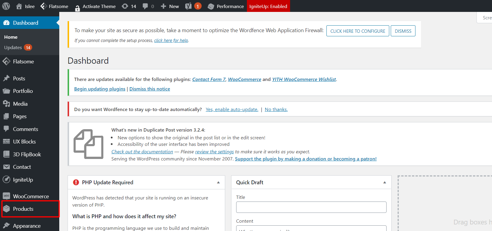 - To add a product, click on the ‘’Products’’ tab on the left sidebar menu.