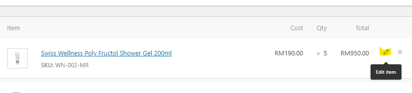 Product items. Select the pencil icon next to a product line to edit.