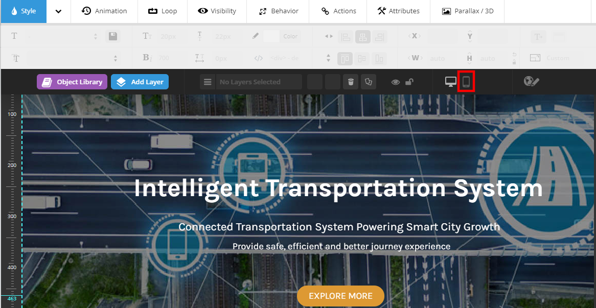 3. Switch slider to mobile view by clicking on "mobile icon".