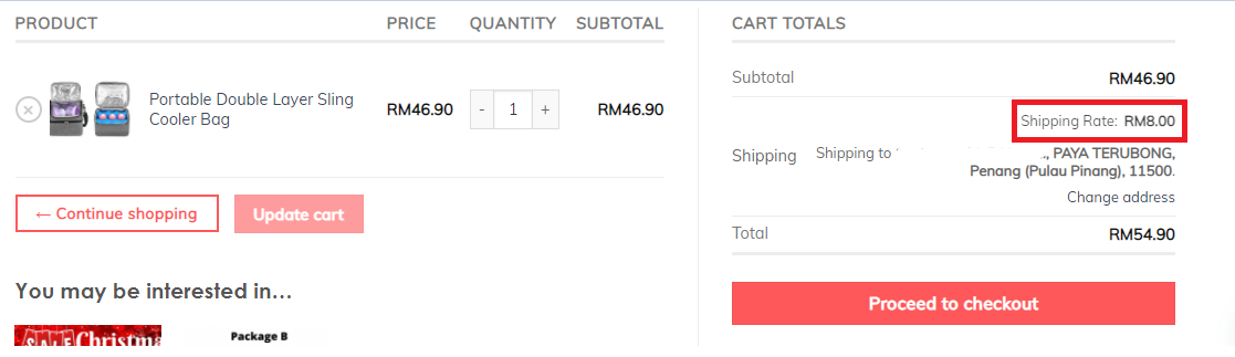 3. Row Cost Column: Key in the Flat rate shipping which is 8 that represents RM8