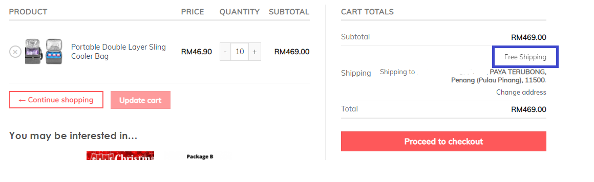 6. Row Cost Column: Key in the shipping rate as 0 that represents RM0(Free shipping)