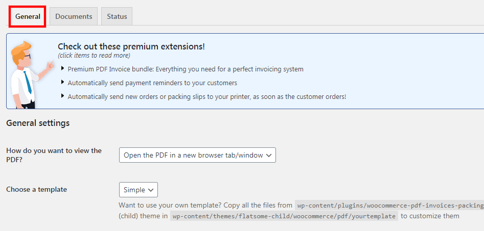 1. Go to "WooCommerce" > "PDF invoices".
