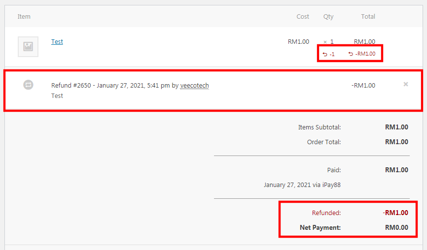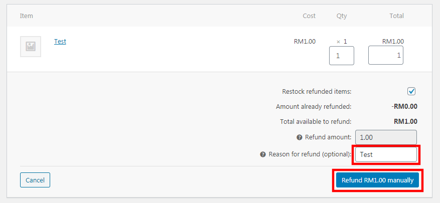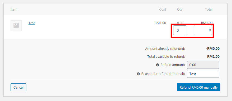 4. Insert the "total quantity" and "total amount" to be refunded.