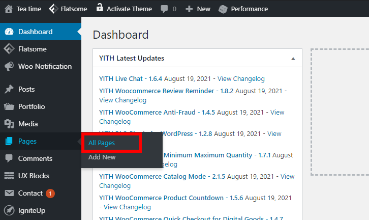 1. Go to Pages > All Pages.