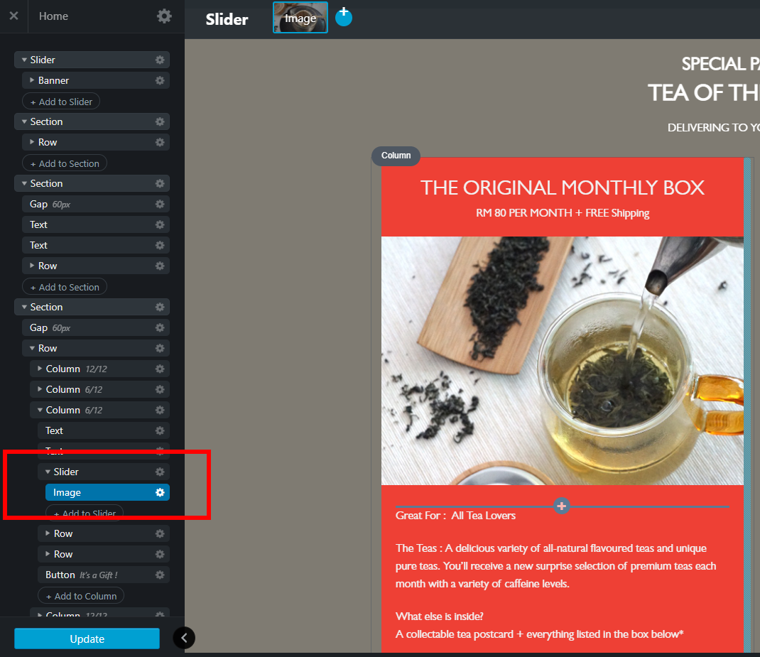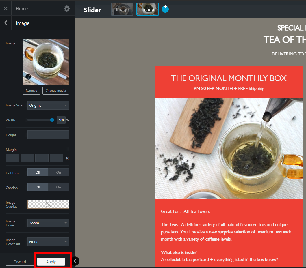 3. Scroll down until reaching the section that has the image slider, click the image.