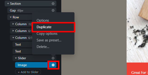 6. Click on the Gear icon of the "Image" first, then click "Duplicate".