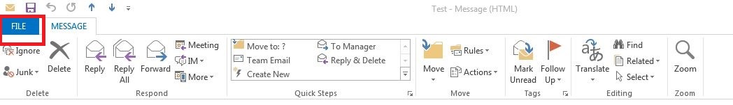 4. If you can't find the ribbon, kindly follow below step. Open email in new windows, click FILE,