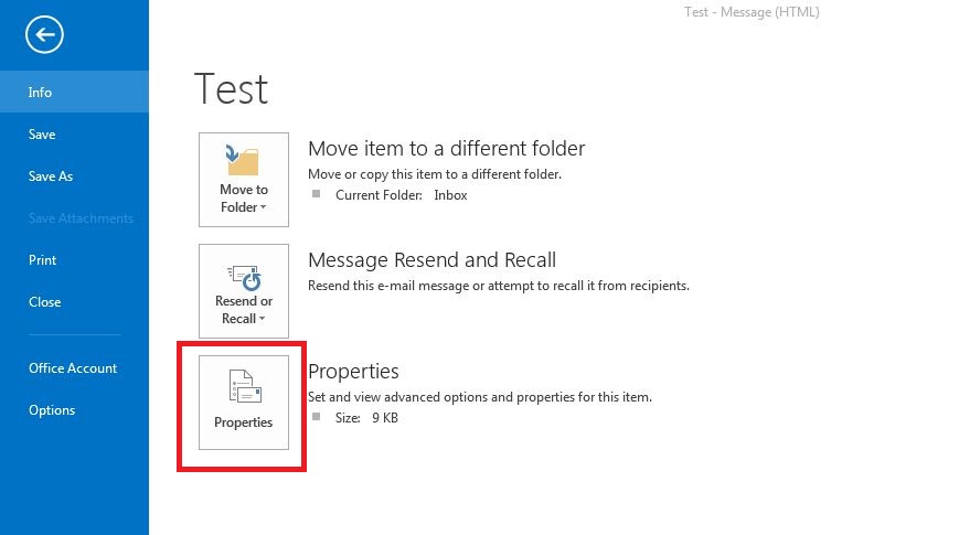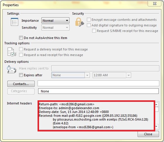 6. Once click Properties, will get the email header.