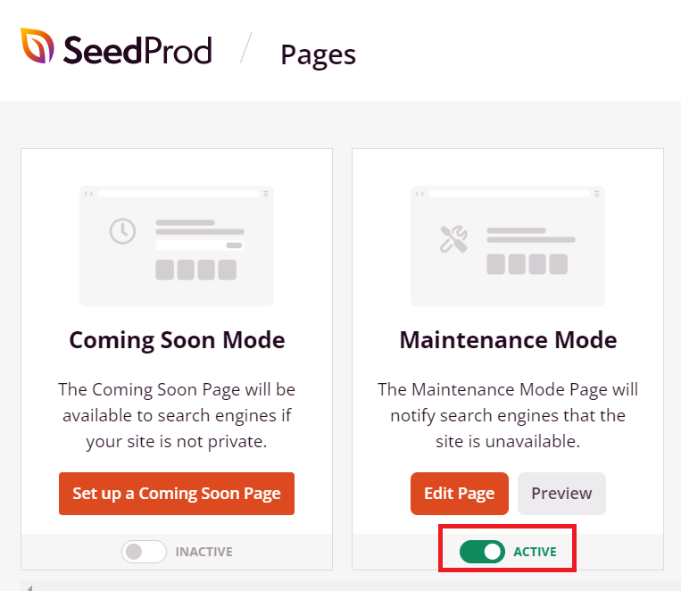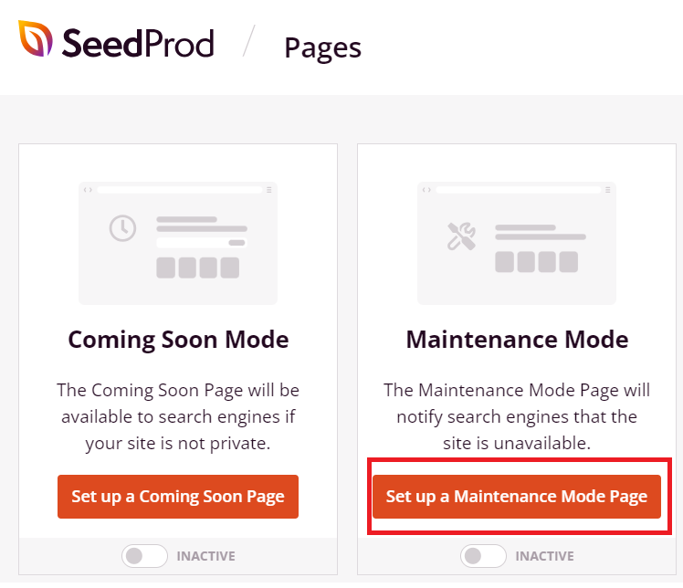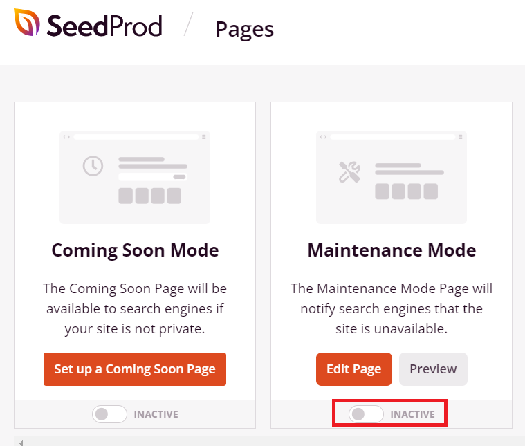 - In the SeedProd interface, you’ll see the Maintenance Mode option.