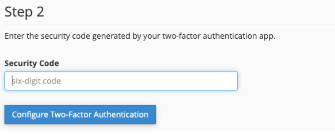 Enter the six-digit security code in the Security Code text box and followed by tapping "Configure Two Factor Authentication"